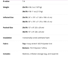 With the addition of the dual use storage bag and reversible high speed valves, we can have the Flex 3D Camping Mattress deflated and rolled up ready to go in less than 3 minutes. It takes up minimal room in our gear locker and I know the quality of the manufacturing will keep it in use for many trips to come.